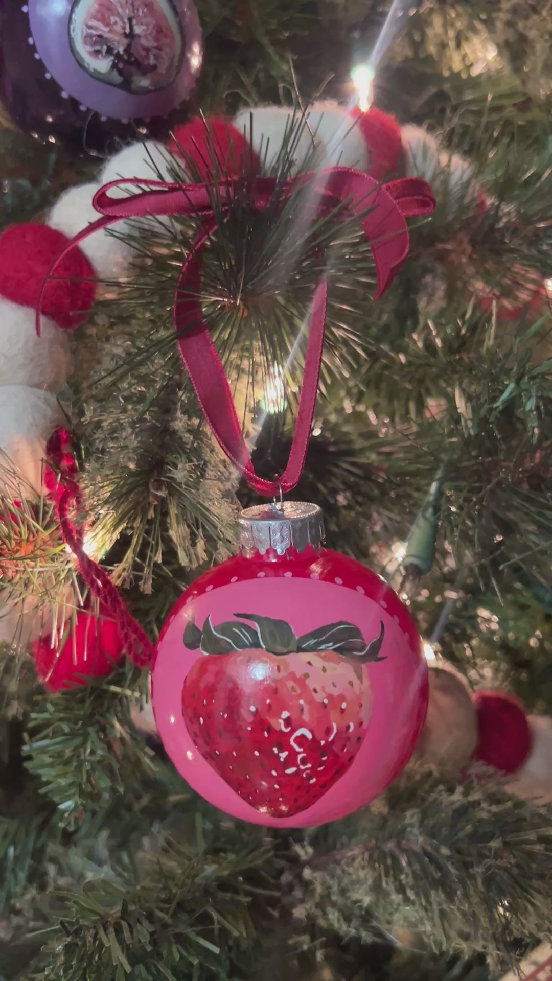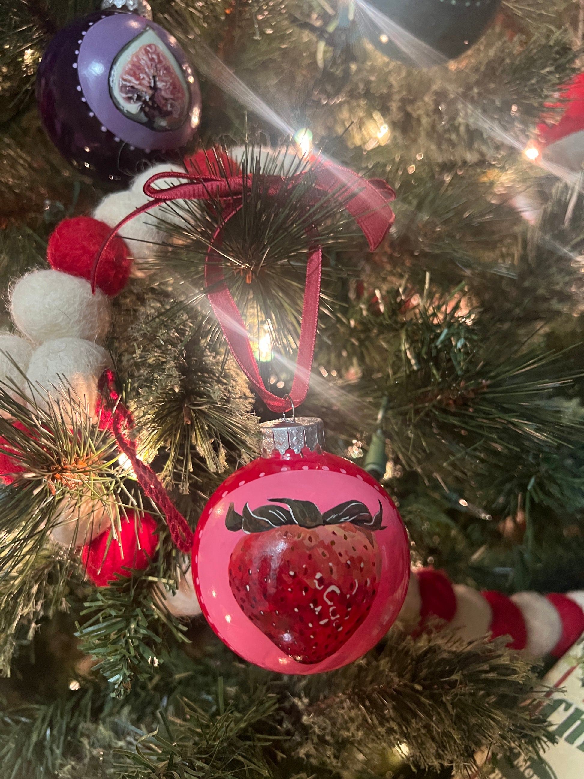 Hand-Painted Christmas Ornaments – Strawberry, Fig & Tomato | Unique Fruit Ornaments for Holiday Decor